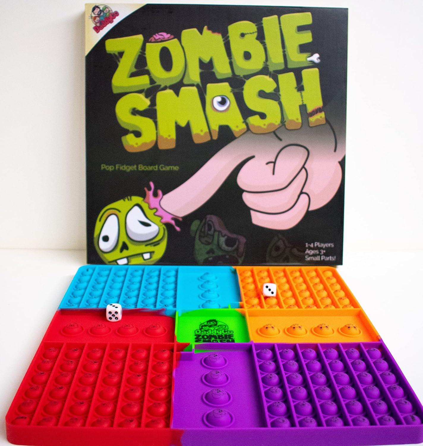 Zombie Smash was the first game created by DaddyCo Toys. This easy-to-play dice-rolling adventure game tasks each player with rolling the dice and being the first to rescue all of their pets from the zombie apocalypse.